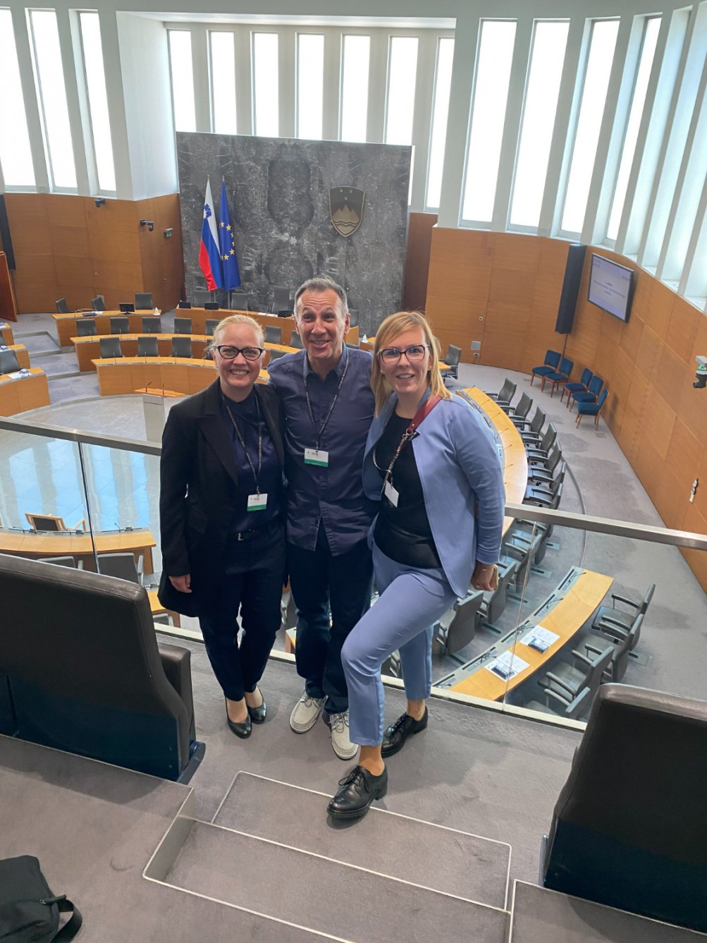 poslanka Tamara Kozlovič, poslanec Robi Janev in ministrica Mateja Čalušić