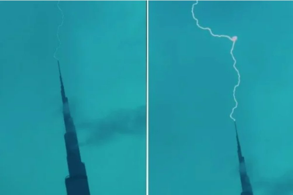 Med neurjem so kamere ujele redek prizor, ko je strela udarila v vrh Burj Khalife, najvišje zgradbe na svetu. Posnetek, ki ga je objavil prestolonaslednik Dubaja in obrambni minister Združenih arabskih emiratov Hamdan bin Mohammed Al Maktoum, prikazuje zelenkasto nebo z gostimi oblaki, iz katerih strela udari naravnost v vrh stolpnice.