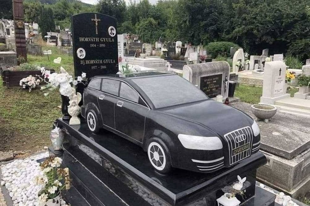 Nenavadna fotografija s pokopališča je postala spletna senzacija. Na njej je razkošen spomenik na grobu v obliki avtomobila Audi A6 Avant, posvečen moškemu po imenu Horvath Gyula, ki je umrl leta 2016.