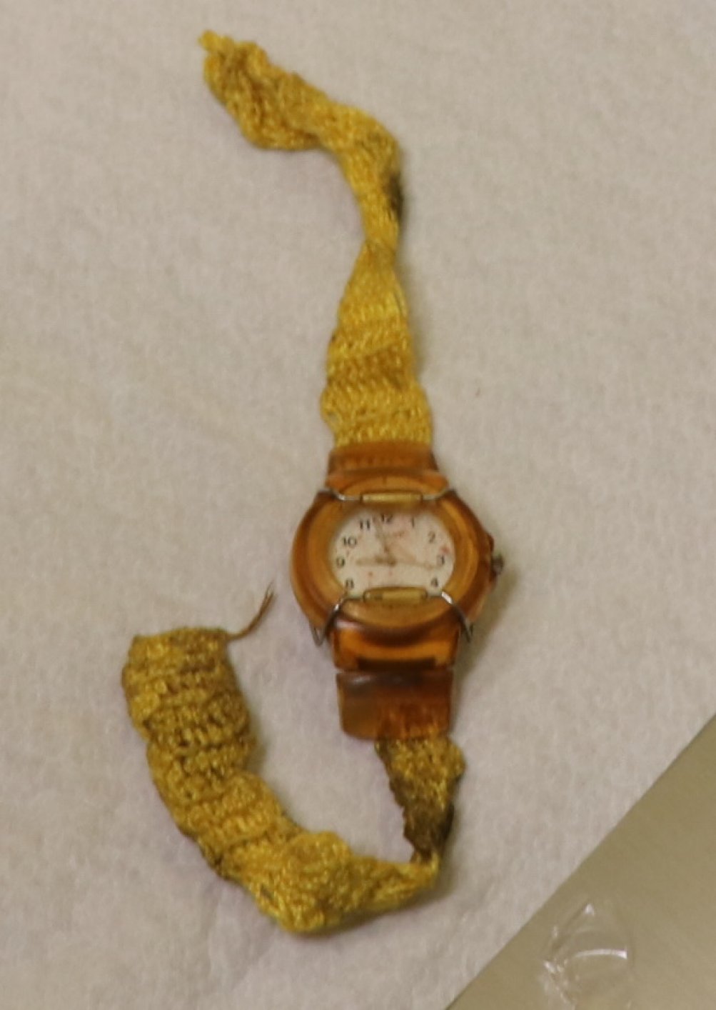 Poleg nje so bila najdena tudi korekcijska očala s svetlo modrim kovinskim okvirjem.