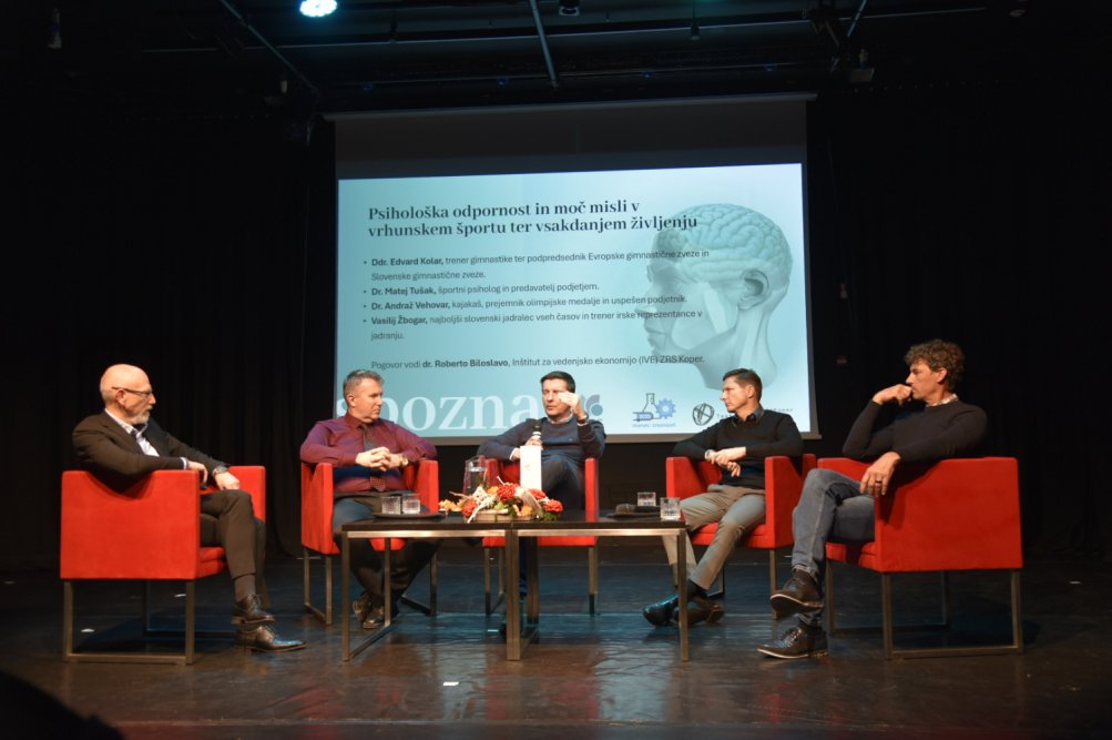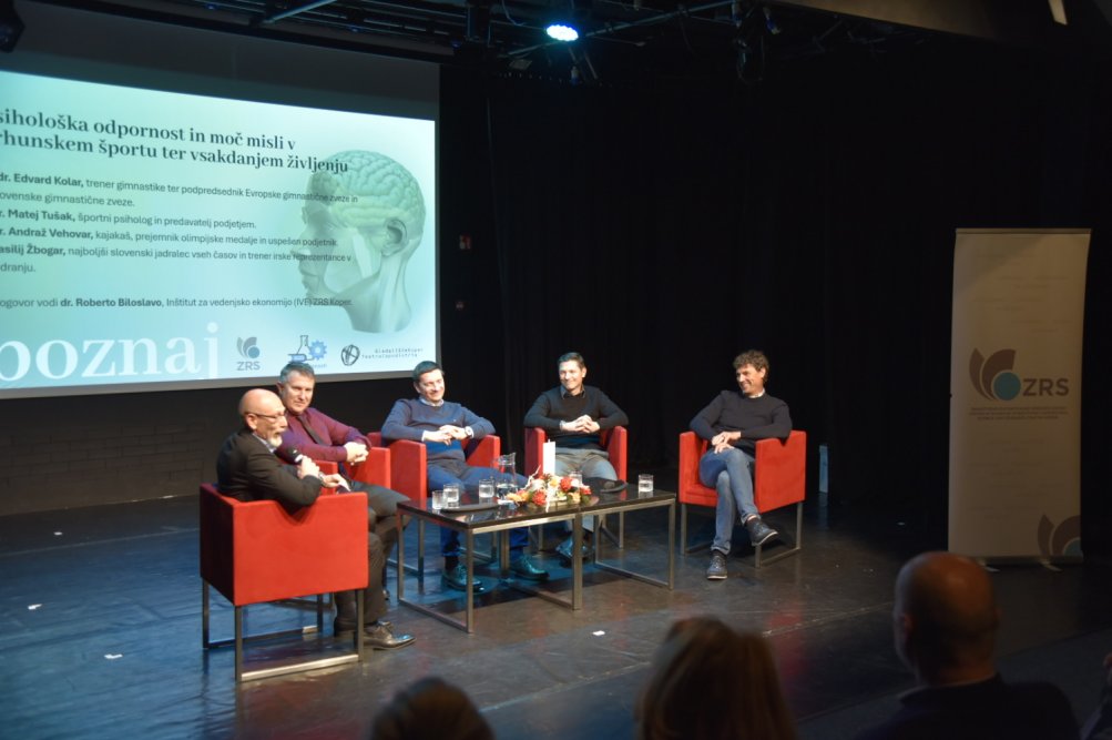 Kako razviti psihološko odpornost, ki nam pomaga sprejemati boljše odločitve in vztrajati na način, ki ohranja zdravje in zadovoljstvo? Na to vprašanje so odgovarjali na letošnjem tretjem dogodku iz cikla SPOZNAJ – SProščeni POgovori o ZNAnosti, ki ga organizira Znanstveno-raziskovalno središče (ZRS) Koper v sodelovanju z Gledališčem Koper. Naslov tokratnega srečanja, ki je potekalo v mali dvorani koprskega gledališča, je bil Psihološka odpornost in moč misli v vrhunskem športu ter vsakdanjem življenju.
