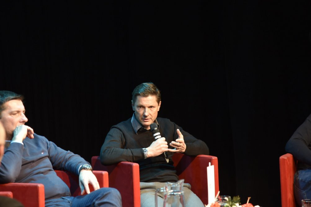Pogovor je vodil dr. Roberto Biloslavo, v. d. predstojnika Inštituta za vedenjsko ekonomijo (IVE) ZRS Koper. Njegovi gostje pa so bili ddr. Edvard Kolar, gimnastični trener in funkcionar Evropske gimnastične zveze ter Slovenske gimnastične zveze, dr. Matej Tušak, športni psiholog, dr. Andraž Vehovar, kajakaš, ki je osvojil srebrno medaljo na Olimpijskih igrah leta 1996 v Atlanti, in Vasilij Žbogar, najboljši slovenski jadralec vseh časov. Vsi štirje so v različnih vlogah sodelovali na olimpijskih igrah ter evropskih in svetovnih prvenstvih.