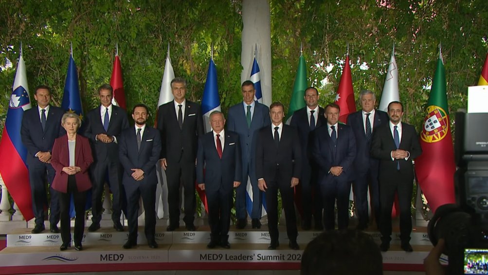 Portorož danes gosti letošnje zasedanje MED9, kjer bodo voditelji Španije, Italije, Portugalske, Francije Malte, Hrvaške, Cipra, Grčije in Slovenije razpravljali o ključnih evropskih in mednarodnih temah, pri čemer bosta v ospredju konkurenčnost evropskega gospodarstva in Bližnji vzhod. Glede slednjega se bo z njimi pogovarjal tudi jordanski kralj Abdulah II. Srečanja se ne bo udeležila italijanska premierka Giorgia Meloni, namesto nje bo Italijo zastopal zunanji minister Antonio Tajani.