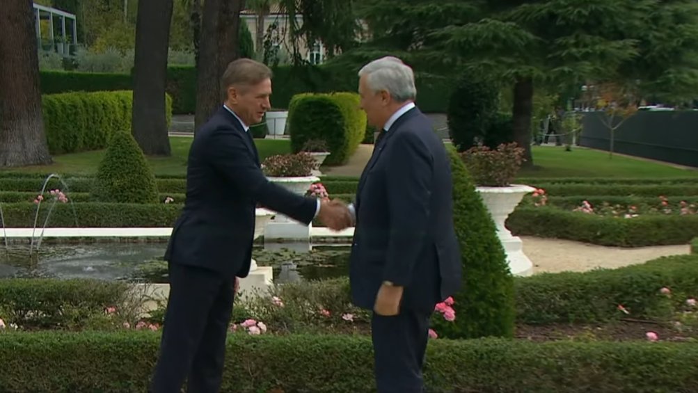 Tudi predstavnik Italije, Antonio Tajani, se je že rokoval z Golobom.