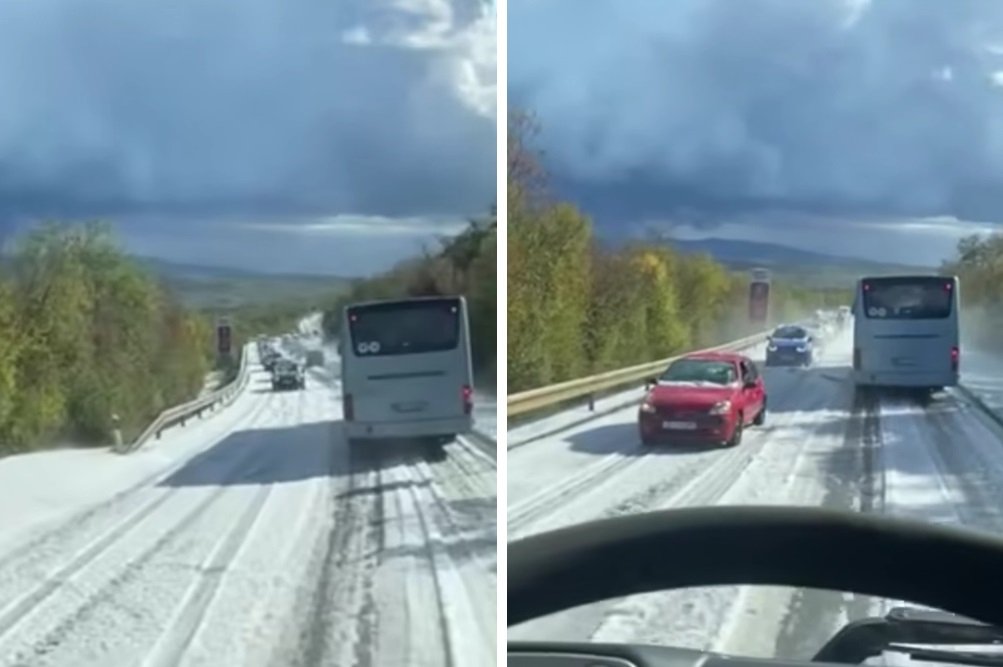 Na območju med mestom Krk in Malinsko je padla tako obilna toča, da so ceste videti, kot bi bile fotografirane v kakšnem smučarskem letovišču, ne pa na otoku.